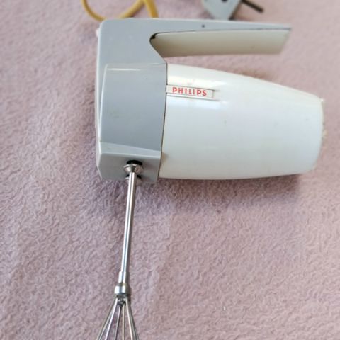 Virkelig velholdt orange og hvid vintage Philips Eletronic 5 håndmixer i velholdt kasse.