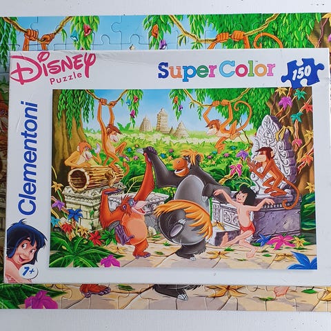 Disney, junglebogen, balou, Puzzle, familiespil, puslespil, Puslespil med Disneys Junglebogen ialt 100 brikker. Den er samlet, alle brikker er der.
