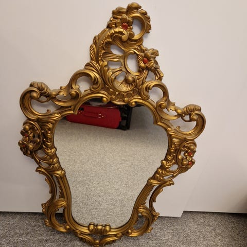 Gammelt rokoko spejl fra sidst i 1800 tallet i patineret grå farve med originalt