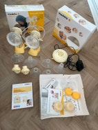 Medela Swing Maxi dobbeltbrystpumpe (hands-free Freestyle), som giver dig mulighed for at pumpe fra begge bryster samtidig.