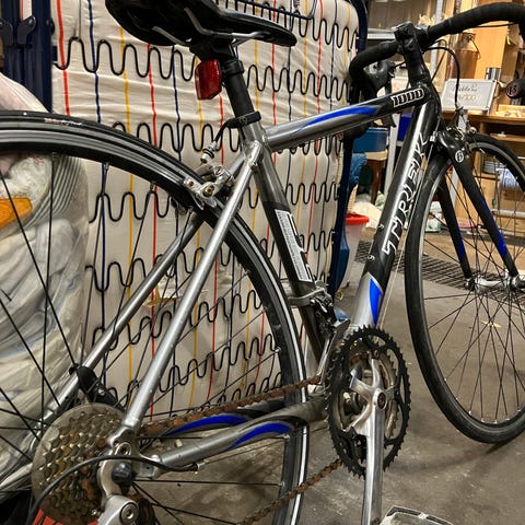 Den har brugsspor, men fejler intet. Gear og bremser er justeret og smurt, og fungerer som de skal. Dæk er næsten nye.