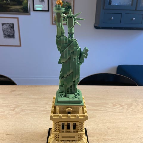 Lego Frihedsgudinden sælges. Der følger både original æske og manual med, og sættet er samlet på forhånd (kan godt skilles ad, hvis det skulle have interesse). Der er ikke solskade eller lignende på brikkerne.