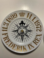 Tallerkner, 2 tallerkner/platter udsendt i anledningen af dronning Margrethes tronbestigelse + i erindring om King Frederik IX