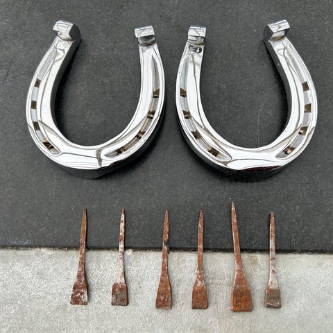 Hestesko, 3 opsatser (sangskjuler) eller pynt til rytterstuen. Hest ikke pony.
