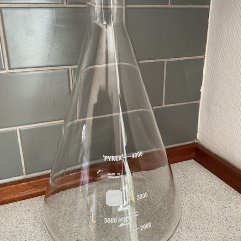 en koble med top, Pyrex 100 ml med skruelåg med top på