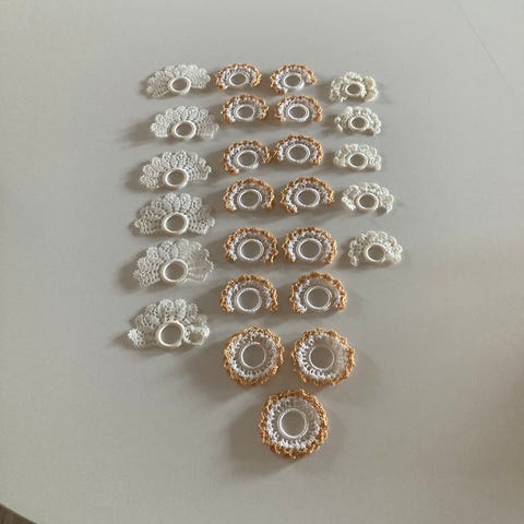 Knipling, Orkis servietringe og ringe til stearinlys, Serviet ringe, ringe til lys mange af hver model, giv et bud , 10 kr/stk!