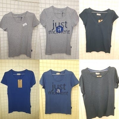 Fv. Blå med tryk foran. Ensfarvet bagpå