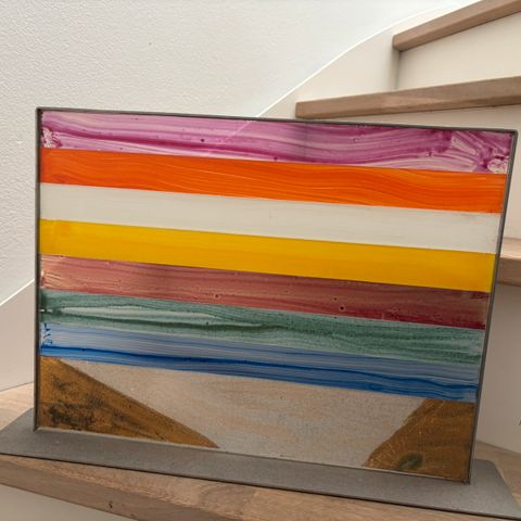 NY PRIS Glaskunst, Peter Stuhr & Per Steen Hebsgaard, motiv: Himlen over Vesterhavet, Måler 42cm bredt og 32cm højt.