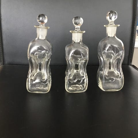 Fin lille mundblæst kluk flaske, antik, i klart glas.