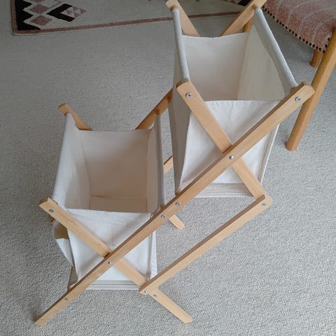 Flot magasinholder i træ. Meget nem at skille ad og samle. 40 cm høj, 37 cm bred og 34 cm dyb.