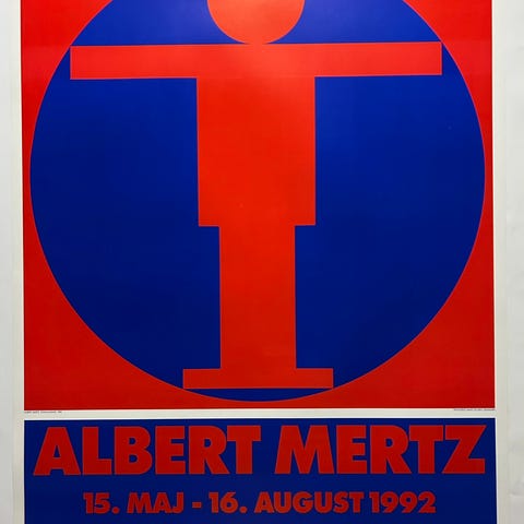 Albert Mertz. Udstillingsplakat fra Nikolaj Udstillingsbygning 1999 i hans velkendte rød og blå farve.