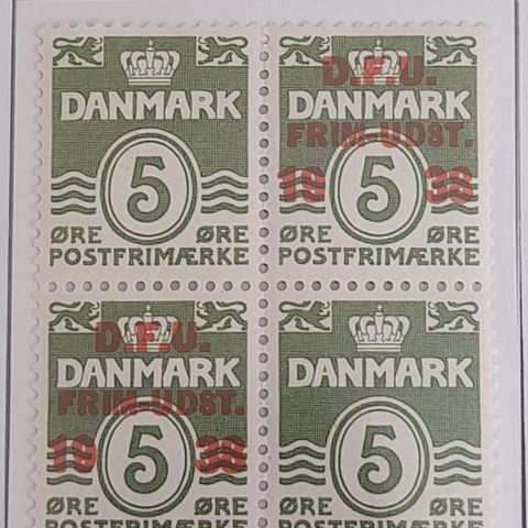 5 øre med overtryk fra DFU's udstilling i Slagelse, perfekt stemplet. AFA vurdering 200 kr.