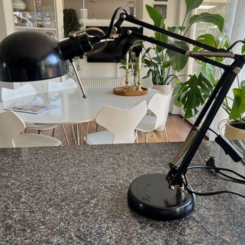 Skrivebordslampe af stål i en klassisk stil, der lyser op i din hverdag. Armen og skærmen kan indstilles, og det gør det til en genial lampe, når du skal læse ved skrivebordet, i sengen eller sofaen.