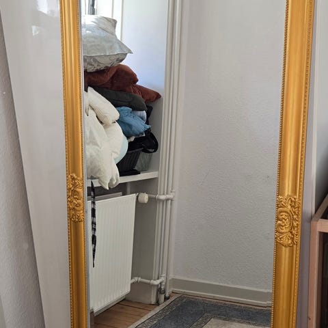 Stort spejl i rokoko agtig ramme - det er ikke nyt men fremstår i flot stand