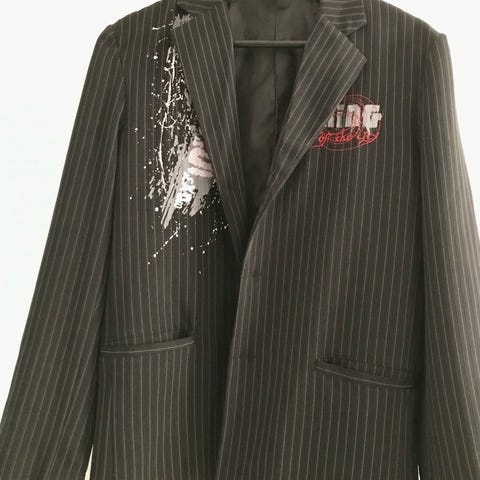 Og en mørkeblå fra hans sidste skoledag eller fra gymnasiet. Jeg kan ikk finde str mærke i den.