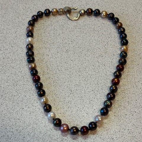 Flot perlekæde af lava og Turkis trukket op på kobolt blå tråd. Magnet lås.