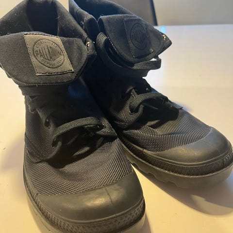 Støvletter fra Palladium. Brugt og fremstår med misfarvninger i canvas og tekstil (se billeder), men fremstår i god stand. Str. 35,5 men er store i størrelsen og passes af en str. 36. Nypris: 800 kr.