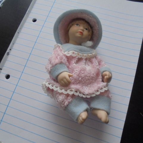 Sød lille ældre dukke – se fotos 9 cm Fin stand