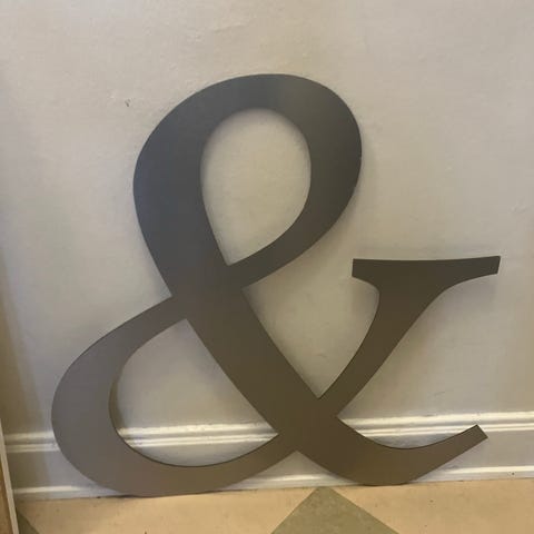 Leder du efter lidt anderledes pynt til hjemmet, så er dette snabel A måske noget for dig. Super flot @-tegn der enten kan hænge på væggen eller stå på gulvet - eller på et skab/ kommode. Måler ca 50 x 52 cm. Med lidt brugsspor.