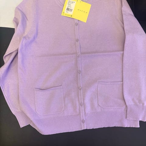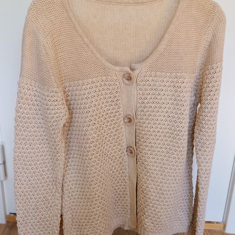 bluse og cardigan, blusen er 55 cm lang midt bag, cardiganen er fra Gina Laura, 60 % viskose og 40 % bomuld, og er 59 cm lang