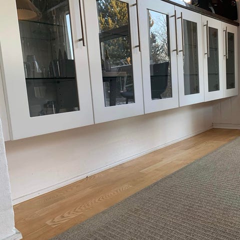 Skuffemøbel med glas overflade, kan bruges som bordplade eller vægophæng. Indeholder 2 skuffer med gals over