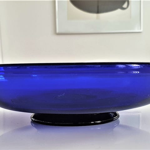 Halvkugleformet korpus med omlagt rand og på flad fod, opdrevet og kuglet.