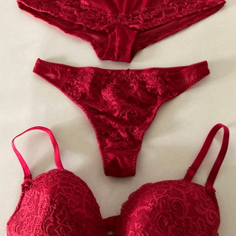 Sødt rødt og intimt lingeri sæt.