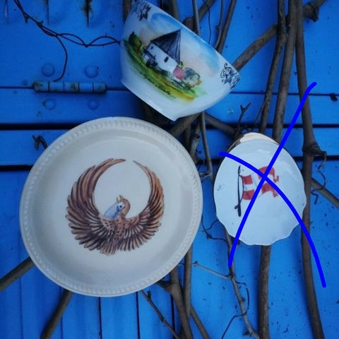 Porcelæn, Ebeltoft Rådhus, Motiv ‘Ebeltoft Rådhus’. Er fremstillet af Royal Copenhagen til Murermesterforeningen for Glostrup, Taastrup, Hedehusene & omegn, i anledning af dens 60 års jubilæum 2. Juni 1965, der blev fejret i Ebeltoft. diameter 12,5 cm