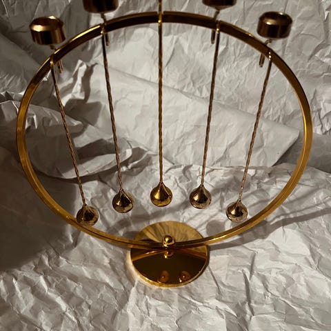 Asmussen design lysestager forgyldt , sæt med 2 stk. Hver lysestage har en vægt på cirka 1389 gram. Designet med en klassisk form, egnet til standard lys. Materialet er forgyldt metal hvilket med elegant og tidløst udseende. Guldbelagning virker her noget mat, derfra prisen. Kan måske poleres? Alt kan sendes p.p.