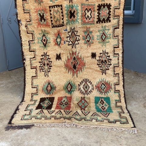 Opdag skønheden og luksusen ved et autentisk, håndlavet Beni Ourain-tæppe, vævet af berberhåndværkere i Atlasbjergene. Disse tæpper er kendt for deres bløde, tætte uld, smukke geometriske mønstre og tidløse design, der passer perfekt til både moderne og klassiske interiører.