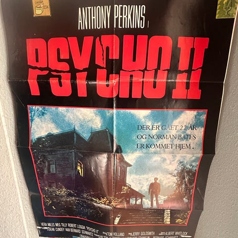 På plakat ser man: Anthony Perkins, Janet Leigh.