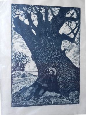 om kunstneren: "-Også efter 2. verdenskrigs ophør udgik en stadig strøm af billeder fra hans værksted. Det var især den klassiske litteratur, der optog ham. Hans to foretrukne danske forfattere var uden tvivl Blicher og H.C. Andersen. Dem begyndte han med at illustrere, og til dem vendte han gang på gang tilbage. Men også Saxo, Kingo, Brorson, Holberg og Tom Kristensen hørte til hans favoritter...."