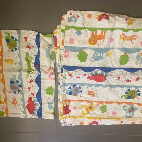 Har ligget til pynt på børneværelse på sofa.