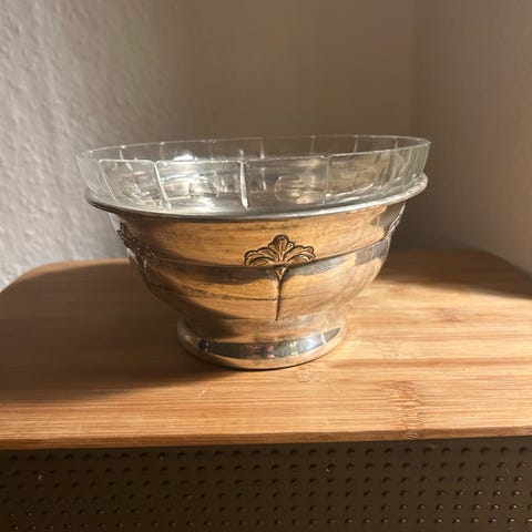 Sølv plet skål, Glas og sølv plet, Mål Ca 8×8 cm