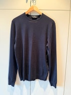 Helt ny langærmet bluse, lidt tynd i det. Til herre i mørkeblå. Mærket er klippet af, men kun prøvet på.