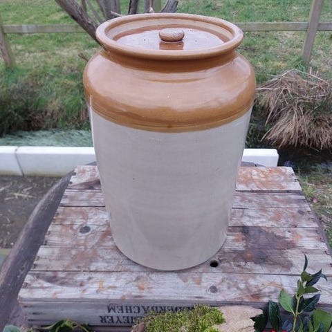 Lav skål som kan bruges til dekoration. Skålen er 7 cm høj og 8 cm i bredden. Farven er lerfarvet duppet med hvid og grøn.
