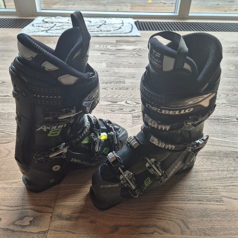 Kun brugt en dag på ski så fremstår helt nye. Str 28,5. Flex 100. Ny pris var 2.200 + fragt.