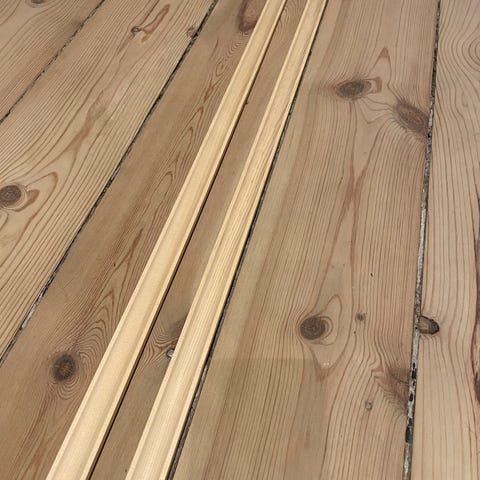 Lister vægliste 9x43mm med 2 runde kanter hvid malet men skal betragtes som grundet sælges 18kr pr meter
