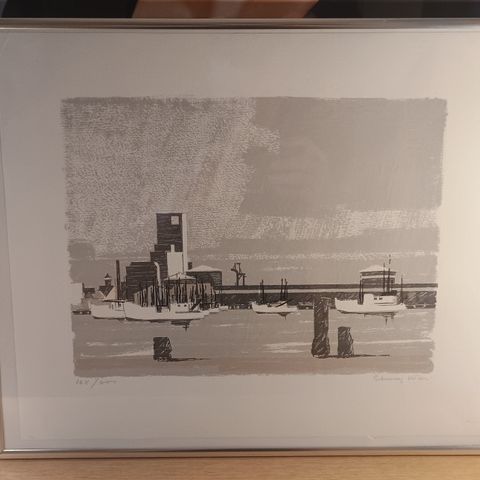 Lastbil i bevægelseFiks færdig400 kr.Flot litografi af Erling Juhl af Esbjerg havnKokkedalFøj til favoritter.
