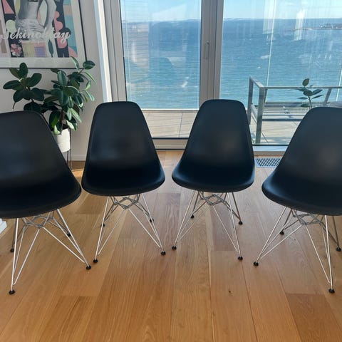 Spisebordsstol, plastic og forkromet stål, Eames DSR, Vitra, 4 stk.Eames Plastic Side Chair (DSR), forkromet fra Vitra Designet af: Charles & Ray Eames