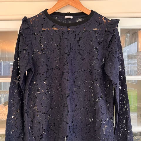 Smuk, feminin kortærmet bluse i broderie anglaise med tunge kanter.