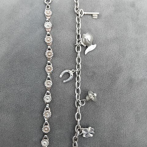 Der er 2 armbånd, 5 brocher og 2 vedhæng.