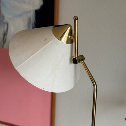 Har haft denne Mads Caprani gulvlampe siden 70/80 erne, skærmen er skiftet ud da den fyldte så meget, skærmen mener jeg at have endnu og kan så medfølge, der er fodtryk på gulvet og og stemplet Caprani light 2 på foden