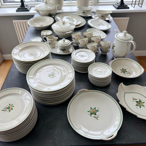 Søgeord: spisestel, Retro, tallerkner, porcelæn.