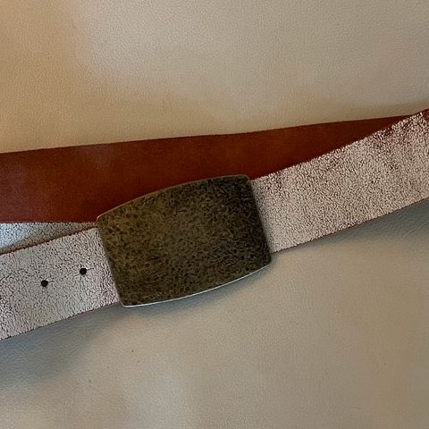 Flettet læderbælte der skal bindes om maven. God stand og flot patina som kun ægte læder kan få.