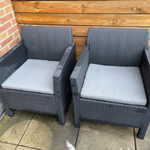 Splinternye uåbnede hynder til COOPs Liva havestole. Normalpris 399 kr.. Har 4 antracitgrå og 4 mørk beige.