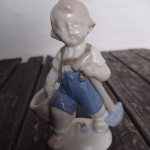 Fin fejlfri porcelænsfigur af dreng med fisk fra GH & Co. Tyskland.