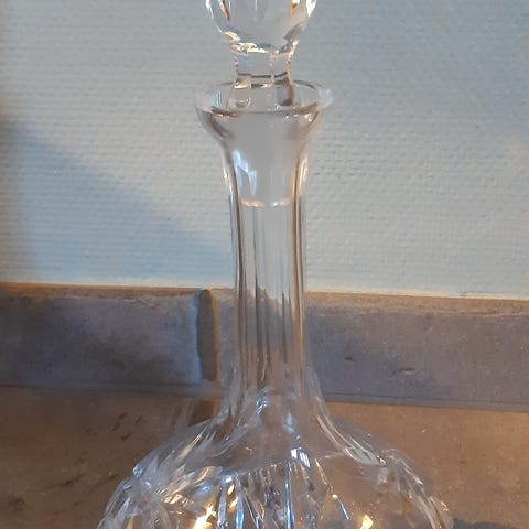 flot og uden skår ca 17 cm høj uden prop, 23,5 med, 14 cm lang og 6 cm bred.