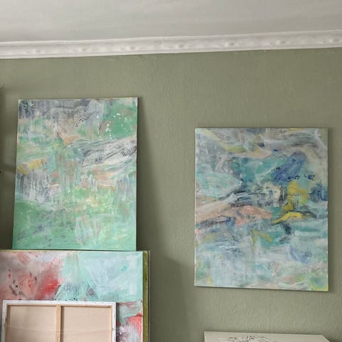 Abstrakt akrylmaleri i grå nuancer