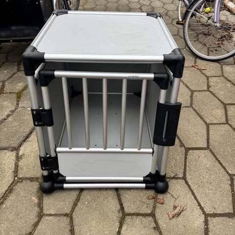 ventilationshuller, opbevaringsfag og åbning i toppen, med håndtag, plast,,l: 55 x B:35 xH: 36 cm, op til 8 kg hund. Sender gerne, dog ikke med fix færdig, porto oveni